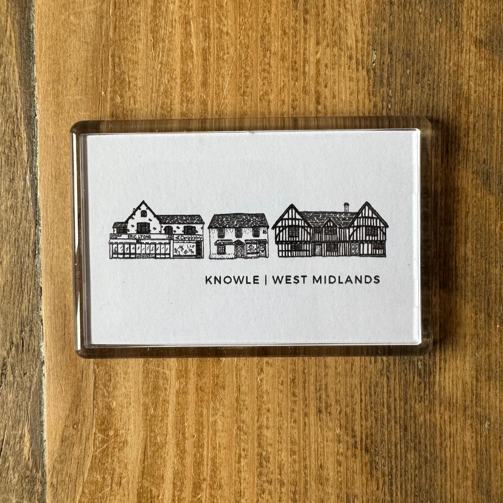 Hand-drawn by local artist, Jackie Roberts, this magnet features key buildings in Knowle; The Guild House, Eric Lyons, Carly’s, The Artisan Bakery and the Library. Each magnet measures 7.8cm x 5.2cm.